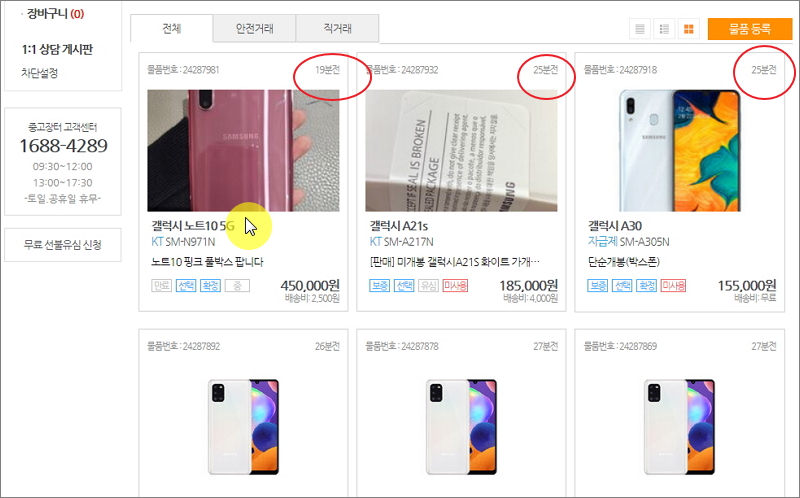 ▼ 검색 결과가 나타났습니다. 19분전에 올라온 매물이 있을 정도로 세티즌을 통해 중고폰을 파는 사람들이 많습니다. 리스트에서 마음에 드는 게시물을 클릭하면 좀 더 상세한 정보를 확인할 수 있습니다.