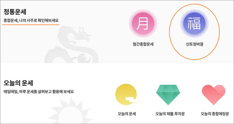 ▼ 전통운세와 오늘의 운세가 여러 개 나타났습니다. 보통 전통 역학 서비스의 경우 생년월일을 기반으로 풀이가 진행이 됩니다. 잘 맞기로 유명한 신토정비결을 통해 사주풀이를 해보도록 하겠습니다.