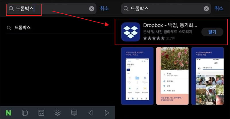 ▼ 이번에는 자동으로 사진을 백업하는 방법을 알려드리겠습니다. 이번에는 컴퓨터를 사용하지 않아도 됩니다. 어플은 설치해야 합니다. 드롭박스 어플리케이션을 설치해 주세요.