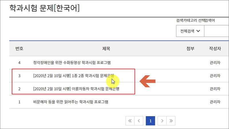 ▼ 학과시험 문제은행 페이지에 접속했습니다. 이곳에서는 여러 가지 버전으로 학과시험 관련 자료를 제공하고 있습니다. 많은 사람들이 보는 운전면허 시험은 보통 1종과 2종입니다. 여기에 해당되는 경우에는 3번 게시물을 선택하면 됩니다. 오토바이를 운전하기 위해 이륜자동차 운전면허 시험에 응시하는 경우에는 2번 게시물을 선택하면 됩니다. 참고로 비문해자와 청각장애인을 위한 학과시험 프로그램도 제공되고 있습니다.
