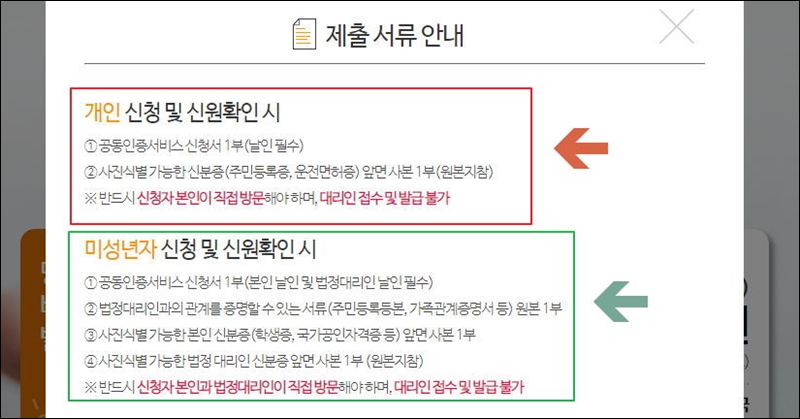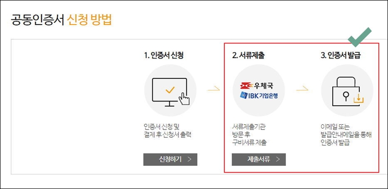 신청을 한다고 해서 바로 공동인증서를 사용할 수 있는 것은 아니에요. 앞에서 언급한 바와 같이 서류제출기관에 방문해서 필요한 서류를 제출해야 하고요. 서류 제출 이후에 사용할 수 있는 공동인증서 파일을 메일로 받아 보실 수 있어요.