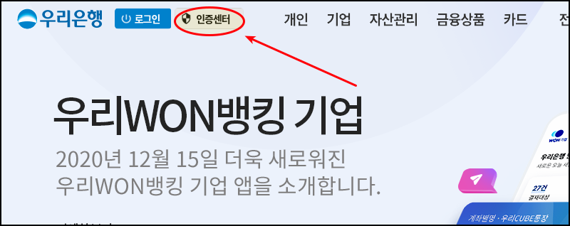 두 번째는 은행이나 증권사 등 개별 기관 사이트에서 발급 받은 공인인증서를 핸드폰에 복사할 때 사용하는 방법이에요. 저는 우리은행을 기준으로 설명을 드릴텐데요. 방식은 동일하기 때문에 다른 기관에서 진행하더라도 해당 내용이 도움이 될 거에요.