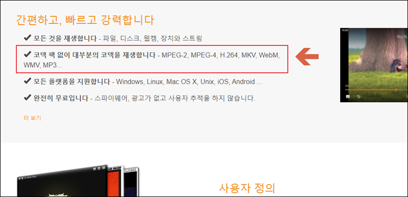 해당 소프트웨어를 처음 본 분들에게 어떤 부분이 좋은지 간단히 알려드릴게요. 일단 모든 비디오 파일을 재생할 수 있고요. 통합코덱을 설치하지 않아도 어떤 동영상이든 수월하게 재생할 수 있다고 해요. 윈도우는 물론이고, 리눅스나 맥OS에서도 사용할 수 있어요. 마지막으로 무료 소프트웨어이기 때문에 부담 없이 사용할 수 있다는 장점을 갖고 있죠.
