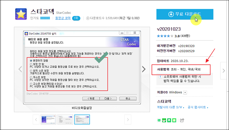 새롭게 열린 페이지를 통해 다운로드 받을 수 있는데요. 사용범위를 보면 "프리" 표시가 되어 있어요. 해당 프로그램은 무료 사용이 가능하다는 의미에요. 다운 받은 파일을 실행하고, 안내에 따라 설치를 진행하면 사용할 수 있어요.