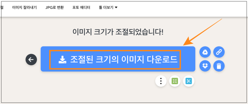 크기 조절이 완료되었어요. "조절된 크기의 이미지 다운로드" 버튼을 클릭하면 결과물을 컴퓨터에 다운 받아볼 수 있어요. 이렇게 압축과 크기 조절 방식을 통해 원하는 만큼 용량을 줄여볼 수 있어요. 직접 해보면 굉장히 쉽다는 것을 알 수 있을 거에요.