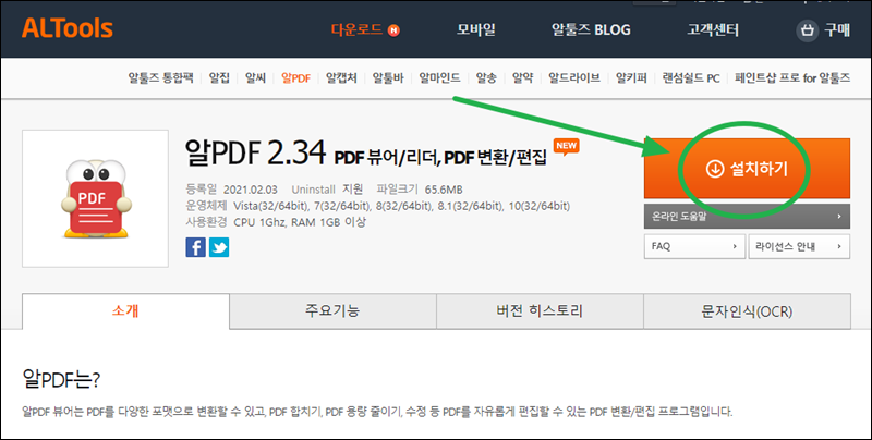 알툴즈 사이트에 접속하면 누구나 무료로 알pdf 설치 파일을 다운 받을 수 있어요. 참고로 해당 프로그램은 윈도우 운영체제에서 사용할 수 있어요.
