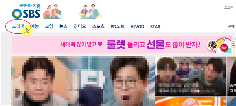 이번에는 sbs 사이트를 통해 드라마 다시보기를 해볼게요.