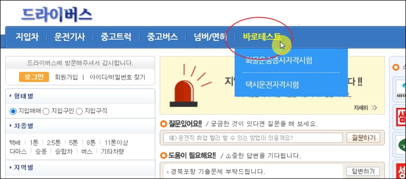 수험자료를 통해 충분히 공부를 했다면 이번에는 버스운송자격증 기출문제를 풀어볼 차례에요. 드라이버스 사이트에서 몇 가지 과목에 대한 기출문제를 제공하고 있는데요. 이를 활용하면 돼요.