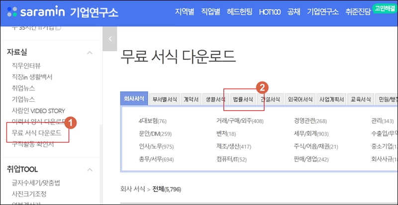 사람인에서 제공하는 무료 서식은 여러 가지가 있어요. 여기에서 법률서식에 있는 내용증명서 카테고리를 클릭해 주세요.