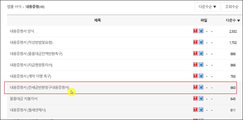 보통 내용증명서를 보낼 때에는 전문가의 도움을 받거나 본인이 직접 작성해요. 전문가의 도움을 받는 경우가 아니라면 내용증명서 작성이 어려울 수 있는데요. 이럴 때에는 기존에 작성된 샘플이나 양식을 이용하면 돼요. 다행히 전세금 반환에 관련된 양식을 인터넷에서 쉽게 다운 받을 수 있네요.