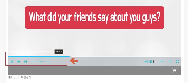 동영상 강의 형식으로 진행되기 때문에 재생 버튼만 잘 누르면 강의를 수월하게 들을 수 있어요. 영상 속도의 배속을 늘릴 수도 있고, 음량 조절이나 전체화면 보기도 가능하오니 참고해 주세요.