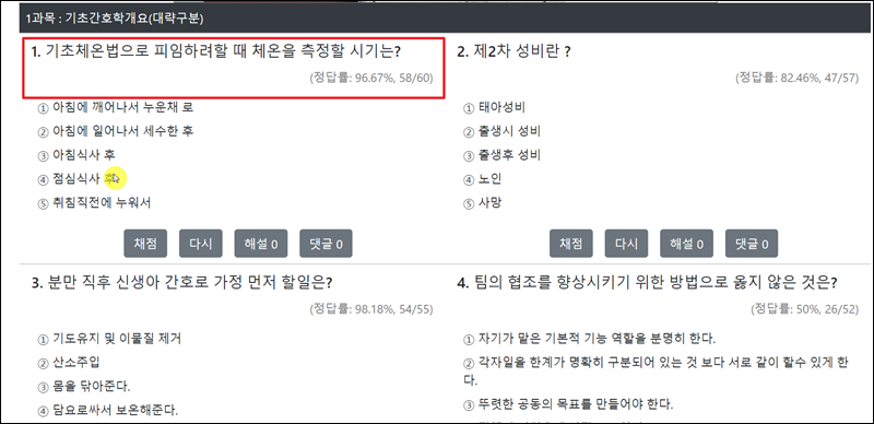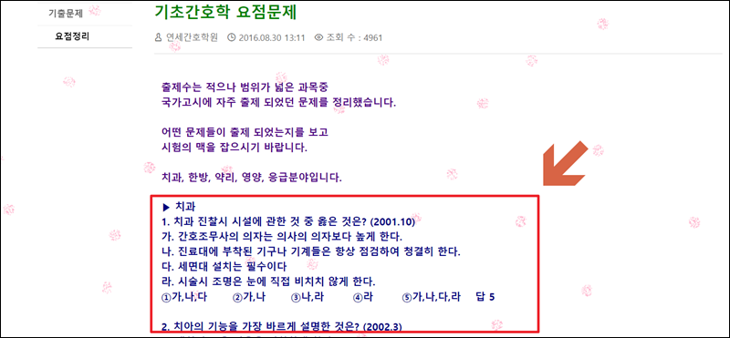 요점문제 게시물도 함께 보면 좋은데요. 기초간호학, 성인간호학, 보건간호학, 공중보건학에 관련된 요점문제가 있어요.