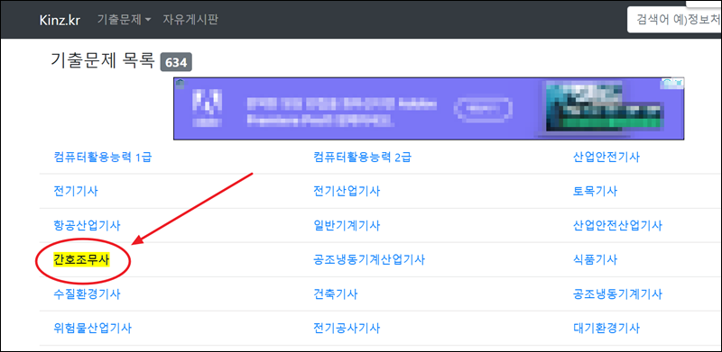 여러 가지 자격증이나 시험에 관한 기출문제를 풀어볼 수 있는 사이트가 있어요. 여러 곳이 있지만 간호조무사의 경우 "킨즈"에서 풀어볼 수 있는데요. 이곳도 무료로 사용할 수 있고, 회원가입을 하지 않아도 괜찮아요.