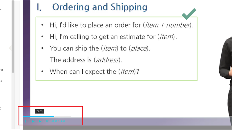 해당 비즈니스 영어 강좌의 경우 전화영어 수업이 더 많네요. 타부서 전화받기, 전화 연결해주기, 전화로 메시지 남기고 받기, 통화 중 문제 발생했을 때, 잘못 걸려온 전화에 대응하기와 같이 직장에서 사용할만한 내용이 참 많아요.
