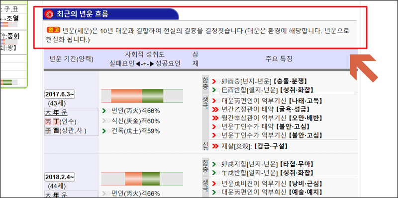 만세력을 통해 알아본 연운 또는 세운은 10년 대운과 결합하여 현실의 길흉을 결정짓는다고 하는데요. 이 또한 사회적 성취도와 주요 특징을 통해 그 의미를 파악할 수 있어요.
