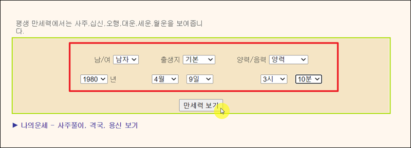 | 만세력 보는법 인터넷 이용하기 (정확한 결과, 해석 보기) (0) | 2020.11.23 |