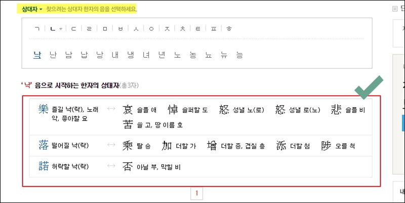 이번에는 상대자를 활용해 보세요. 반대의 의미를 가진 한자를 의미하는데요. 예를 들어 "즐길 낙(락)"이라는 한자를 외우는 경우 "슬플 애", "슬퍼할 도", "성낼 노", "슬플 비", "쓸 고" 한자와 같이 암기하면 돼요. 처음에는 조금 어렵게 느껴지지만, 이 방법을 꾸준히 사용하면 나중에는 실력 향상 속도가 빨리 올라갈 거에요.