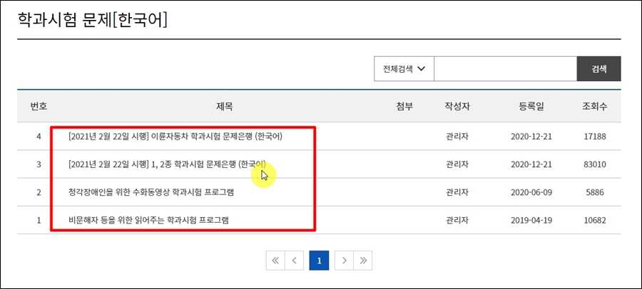 그럼 맨 우측에 "학과시험 문제은행" 서비스 버튼을 찾을 수 있습니다. 클릭해 주세요.