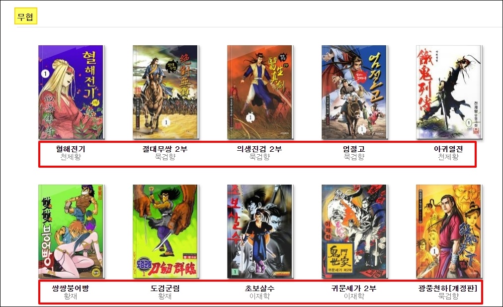이번에 업데이트 된 무협 작품은 천제황, 묵검향, 황재, 이재학 작가의 작품이 많이 보입니다.