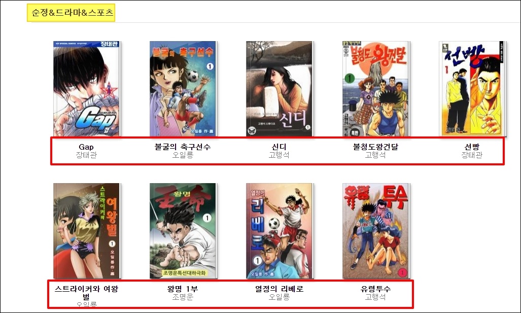 순정, 드라마, 스포츠 작품의 경우 장태관, 오일룡, 고행석, 장태관, 조명운 작가의 작품이 업데이트 되었습니다.