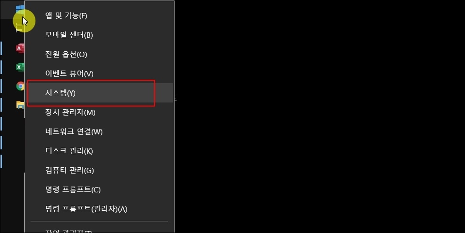윈도우10에 기본적으로 갖추어진 시스템을 이용한 방법과 프로그램을 사용하는 방법 이렇게 2가지가 있는데요. 운영체제 설정을 통해 밝기 조절을 먼저 해보도록 하겠습니다. 일단 윈도우 시작 버튼에 마우스 우클릭을 해보세요. 그럼 앱 및 기능, 모바일 센터, 전원 옵션 등 여러 가지 메뉴가 나타나는데요. 여기에서 "시스템"을 클릭합니다.