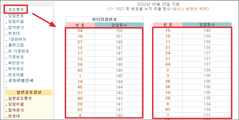1회부터 지금까지 로또 당첨 번호 많이 나온 숫자는 물론이고, 상위 20개 이상을 바로 알려드리겠습니다. 여기에 더하여 자주 출현한 수자 조합이나 숫자 합계 등 다양한 방식으로 산출된 통계 자료를 보여드리겠습니다. 매주마다 새로운 추첨이 있을 때마다 해당 결과를 반영하기 때문에 항상 최신으로 볼 수 있습니다.
