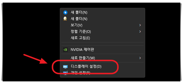 1. 일단 컴퓨터가 켜고, 윈도우10 바탕화면에 마우스 우클릭을 해주세요. 그럼 마우스 전용 메뉴창이 활성화 되는데요. 여기에서 하단 부분에 위치한 "디스플레이 설정"을 선택합니다.