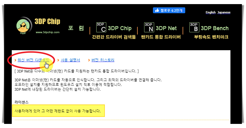 3. 가장 최신 버전으로 3dp net 프로그램에 대한 설치 파일을 다운로드 받아 주세요. 참고로 해당 프로그램은 누구나 어떤 제한 없이 무료로 사용할 수 있습니다. 오프라인 설치를 지원하기 때문에 네트워크 연결이 되지 않는 상태에서도 요긴하게 사용할 수 있습니다.