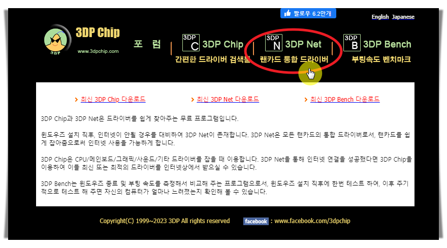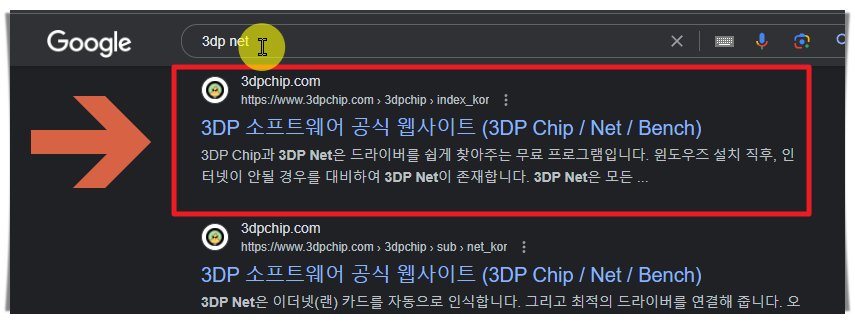 1. 우선 서론에서 이야기한 프로그램을 해야 합니다. 3dp chip 닷컴 사이트에 접속하면 되는데요. 이번 시간에 사용하려고 하는 3dp net 프로그램을 검색해도 해당 사이트로 접속이 가능합니다.
