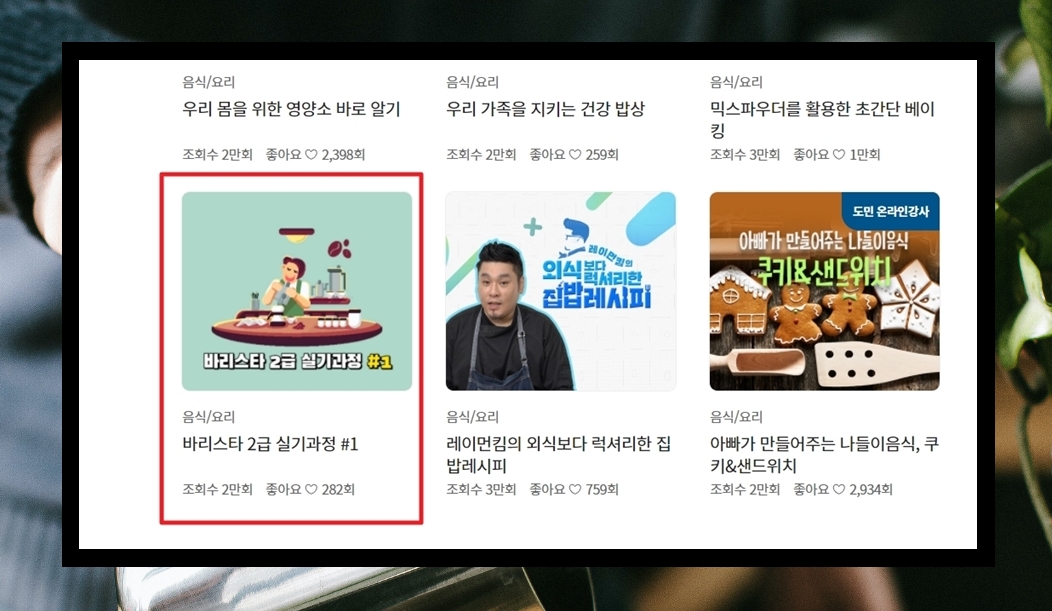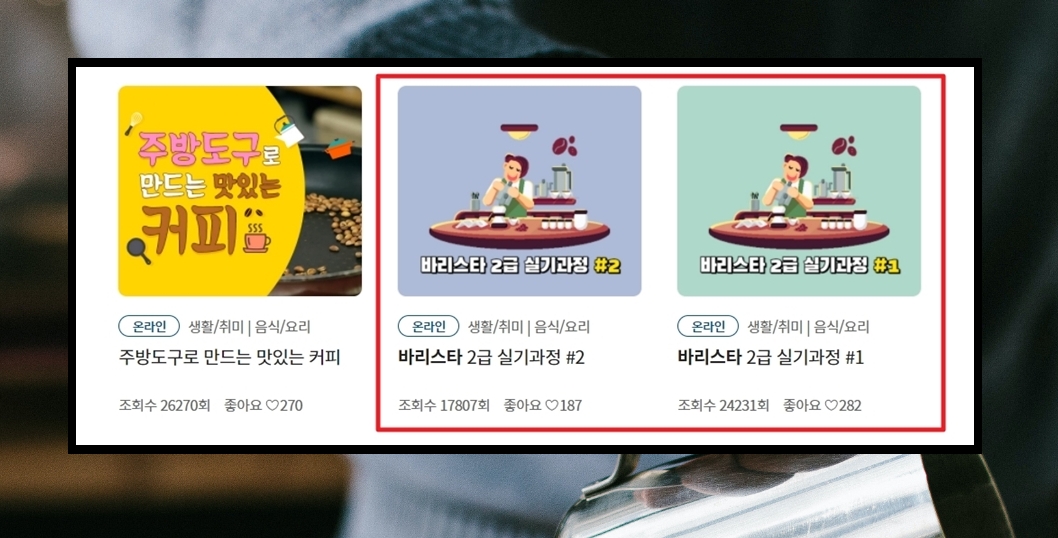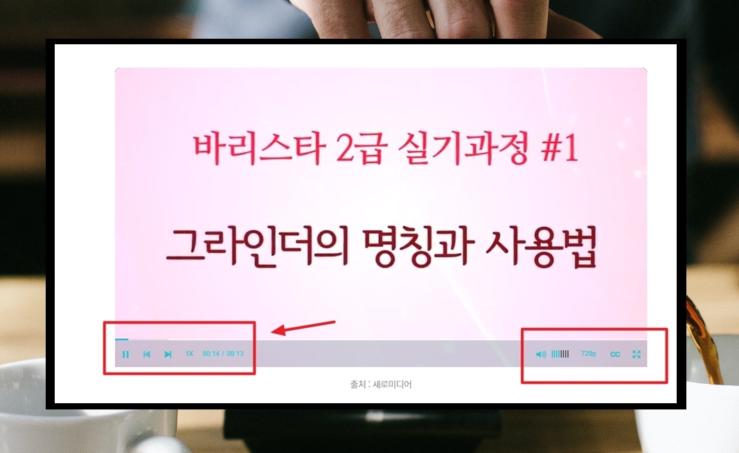 무료 콘텐츠인 바리스타 2급 실기시험 동영상 이용하기.
