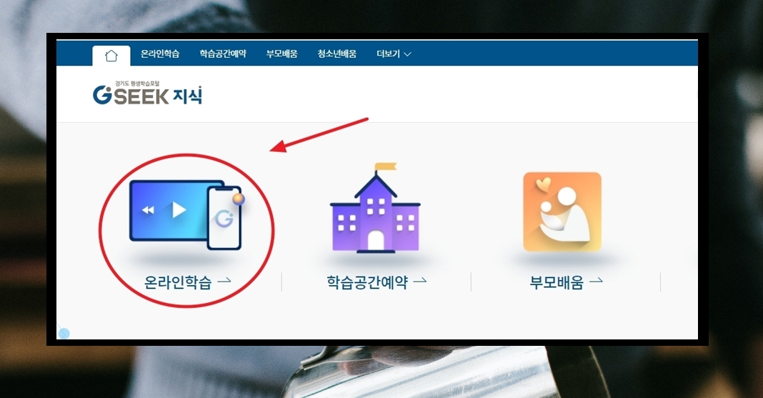 GSEEK 사이트에 접속하면 온라인 학습 서비스를 선택합니다.