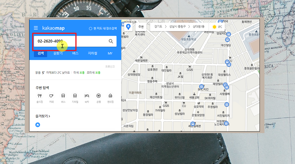 2. 일반적으로 지도 서비스를 이용할 때에는 가게 이름이나 지역명을 검색하는데요. 카카오맵의 경우 전화번호를 검색하는 것도 가능해요. 이렇게 전화번호로 검색하면 해당 번호를 가진 상점이나 관공서가 나타나요.