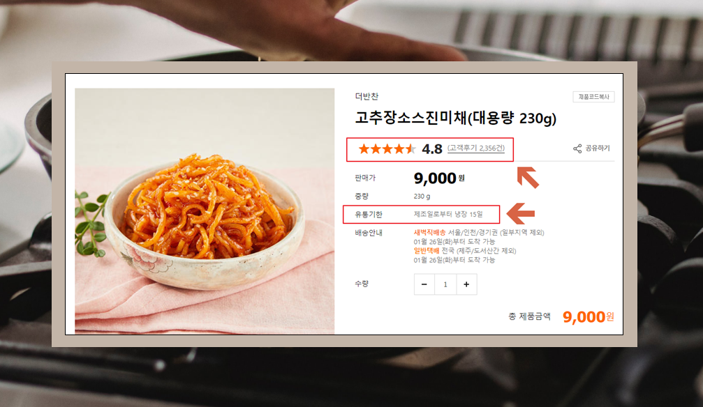 5. 리스트에서 관심이 가는 요리를 클릭해 보세요. 그럼 평점을 통해 얼마나 사람들이 선호하는 것인지 알 수 있어요. 유통기한도 참고할 수 있고요.