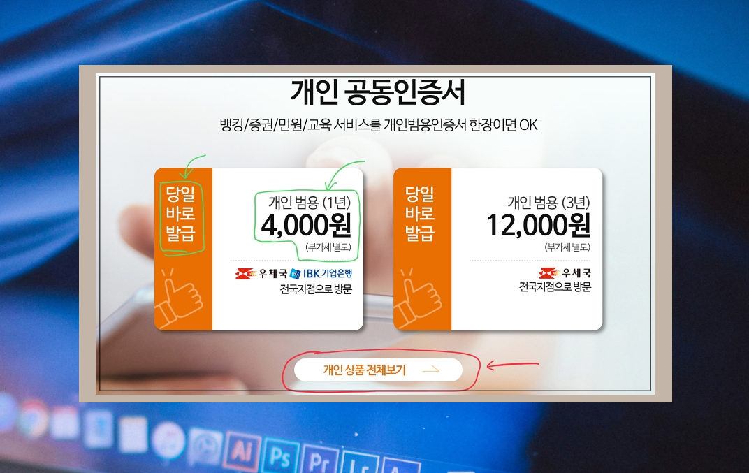 4. 이번 시간에는 많은 사람들이 인터넷으로 주로 발급 받는 개인 공동인증서를 중심으로 알려드릴게요. 화면을 보면 범용 상품이 보일 텐데요. 말 그대로 이 한가지로 여러 용도로 사용할 수 있음을 의미해요.