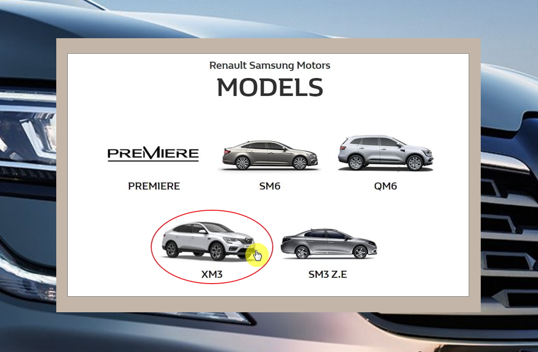 3. 르노삼성 자동차의 대표 모델인 SM6, QM6, XM3, SM3 Z.E가 나타났네요. 여기에서 정확한 신차가격표를 확인하고 싶은 모델을 클릭해 주세요.