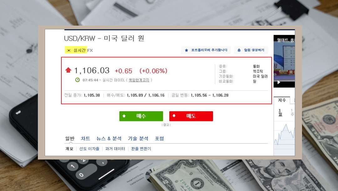 이번에는 실시간 조회를 할 수 있는 원달러 환율 정보에 대해 알려드리려고 합니다. 시세는 물론이고, 차트와 관련 뉴스 등 여러 가지 정보를 알차게 받을 수 있습니다. 개인적으로 저는 차트로 보는 것이 편리한데요.