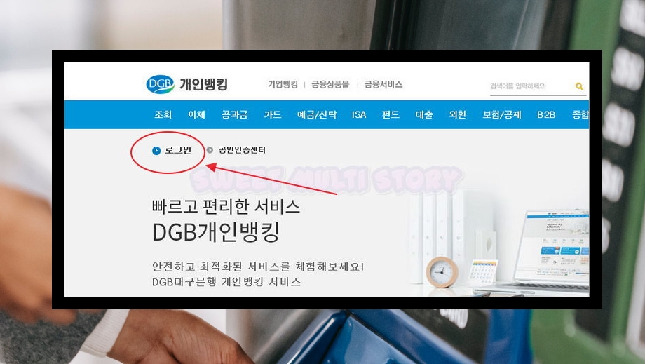 5. 공인인증서까지 발급을 받은 상황이라면 대구은행 사이트를 통해 개인인터넷뱅킹 서비스를 마음껏 이용할 수 있어요. 홈페이지 상단에 있는 [개인 뱅킹]을 클릭해 보세요. 그럼 해당 사이트를 통해 인터넷으로 처리할 수 있는 서비스가 나타나는데요. 일단 로그인을 해야지 이용할 수 있어요. [로그인] 버튼을 클릭한 후 공인인증서를 가지고 로그인을 해주세요.