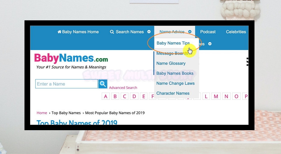 6. 아무래도 한글이 아니기 때문에 어떤 점을 주의해야 할지 알기 어려워요. 그럴 때에는 메뉴에서 Name advice와 baby names tips를 차례대로 클릭해 주세요.