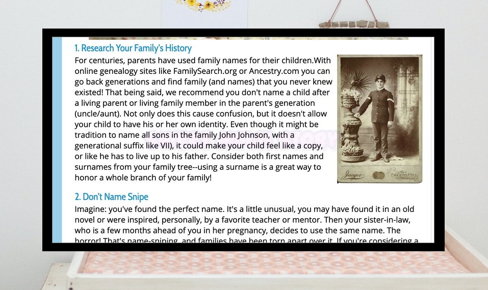 7. 영어로 작명을 할 때 참고해야 하는 팁 10가지를 읽어볼 수 있는데요. 영어로 나오는데, 걱정하지 마세요. 크롬 브라우저의 자동 번역 기능을 이용하면 돼요. 제가 앞에서 언급한 이상한 단어로 발음이 되거나 동일한 것을 피하라는 팁도 포함이 되어 있네요. 꼼꼼히 읽어보시고, 여자 아이의 이름을 멋지게 지어주세요.