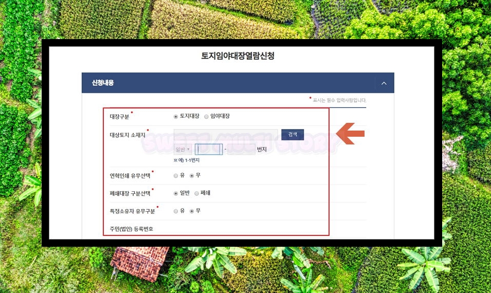 온라인으로 진행하는 토지대장 무료열람 방법 안내.