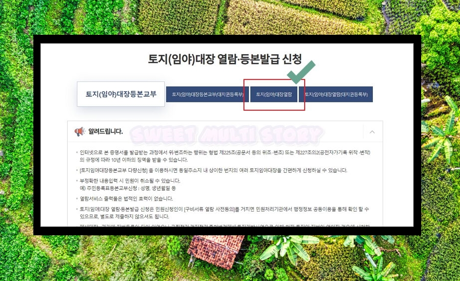 온라인으로 진행하는 토지대장 무료열람 방법 안내.
