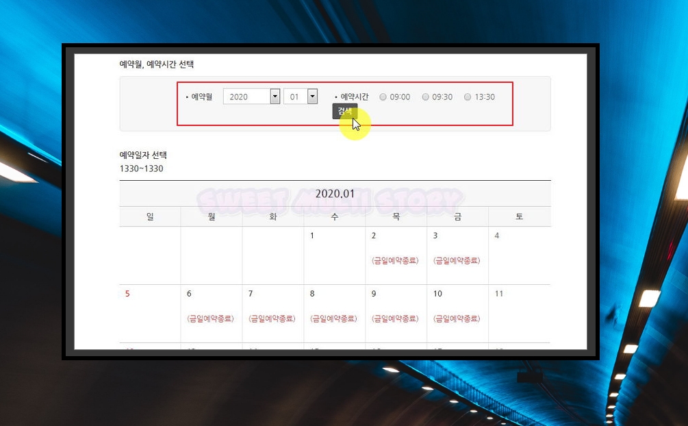 8. 이번에는 날짜와 시간을 선택할 차례에요. 보통 평일 9시, 9시 30분, 13시 30분에 테스트를 받아볼 수 있어요.