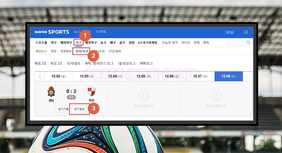 1. 국내 및 해외 스포츠 관련 정보나 영상을 볼 때 유용한 사이트가 있어요. 바로 네이버 스포츠인데요. 이곳을 통해 국내 축구중계는 물론이고, 해외 경기 방송까지 볼 수 있어요. 컴퓨터와 스마트폰를 통해 볼 수 있기 때문에 TV가 없거나 가족들에게 채널 선택을 양보해야 할 때 더욱 유용해요.