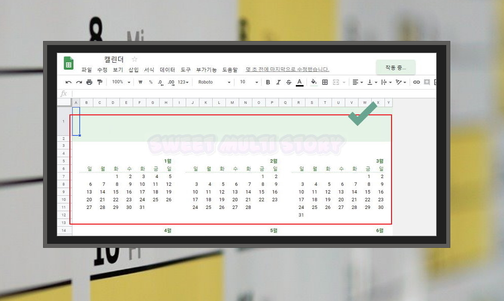 3. 구글 스프레드시트에서는 2023년 달력 양식을 제공하고 있어요. 바로 사용할 수도 있고, 파일로 다운로드 받을 수 있죠. 2023년 캘린더를 클릭해서 달력 사용법과 함께 문서로 다운로드 받는 방법을 알려 드리겠습니다.