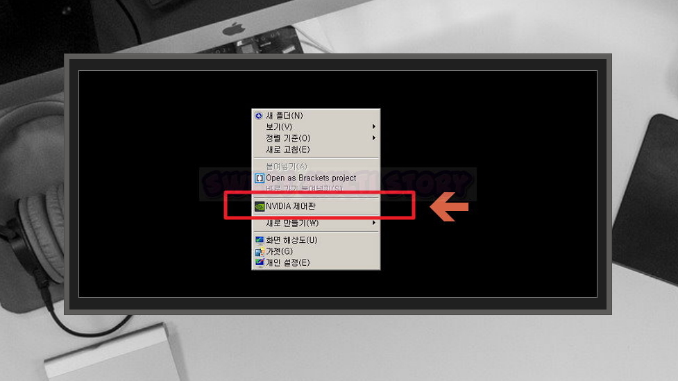 5. NVIDIA 그래픽카드가 장착된 경우라면 그래픽카드 전용 프로그램을 이용하는법도 있어요. 이 방법이나 윈도우 제어판을 이용하는법이나 거의 차이가 없어요. 바탕화면에서 마우스 우클릭을 한 후 [NVIDIA 제어판]을 클릭해 주세요.