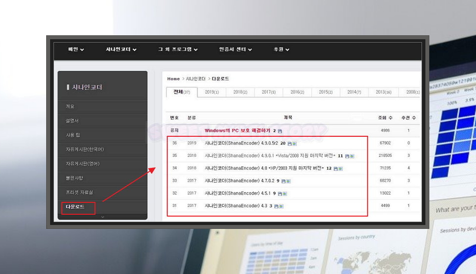 2. 샤나인코더 제작사 사이트에 접속하면 바로 최신 버전을 받으실 수 있습니다.