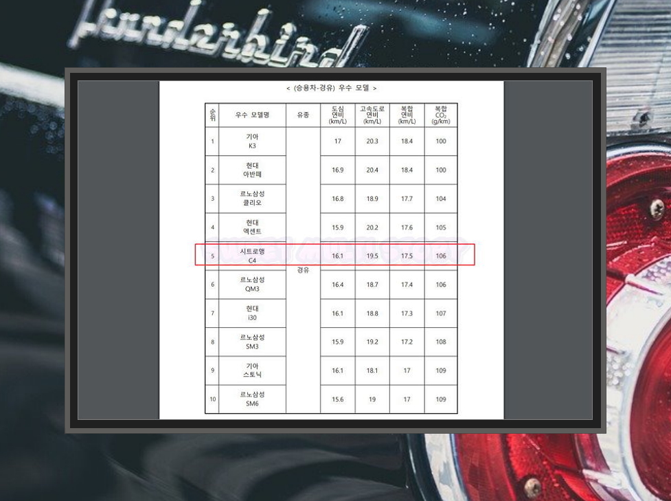 경유를 연료로 하는 수입차의 경우에는 시트로앵의 C4가 돋보이는데요. 경유 사용을 원하신다면 연비좋은 국산차를 추천 드리고 싶네요.