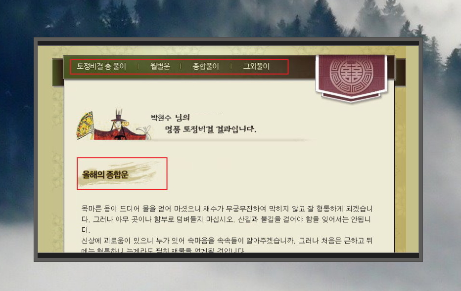 5. 토정비결 결과는 종합운부터 시작해요. 2024년 올해 어떤 일이 펼쳐질지 이야기를 해주는데요. 좋은 일만 있는 것도 아니고, 나쁜 일만 있는 것도 아니라고 하네요. 안타깝게도 관재와 구설이 간간히 있어서 곤혹스러운 일이 있을 수 있다고 하네요.