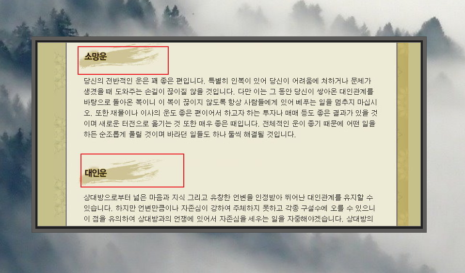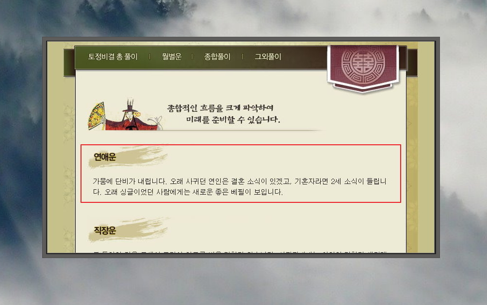 나의 운명이 어떻게 펼쳐질지 속 시원하게 알 수 있습니다. 물론 너무 믿지는 마시고, 적당히 믿으면서 재미 위주로 보는 것을 추천합니다.