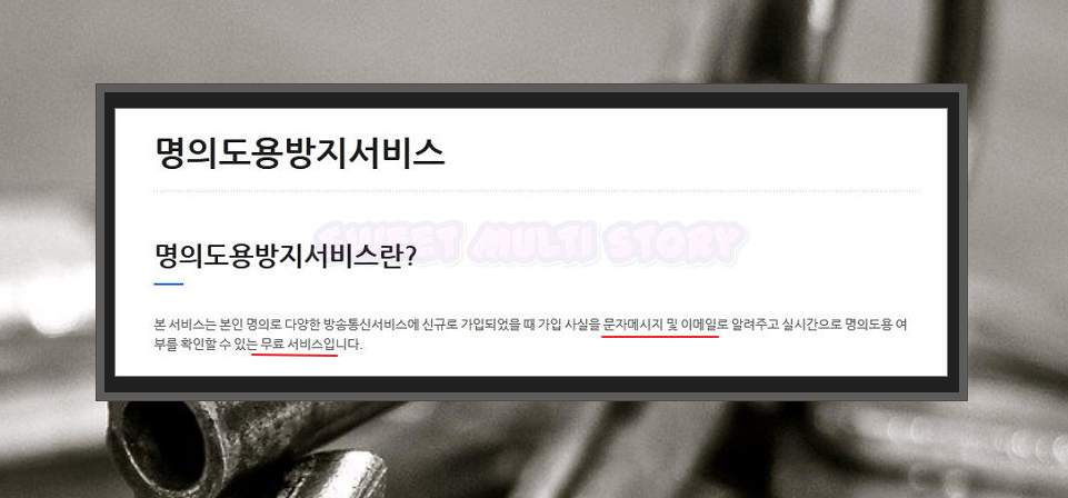 이번 시간에는 명의 도용에 대한 문제를 방지하는 데에 도움이 되는 서비스를 알려드리겠습니다. 누구나 무료 사용이 가능한 것이에요.